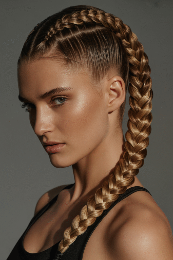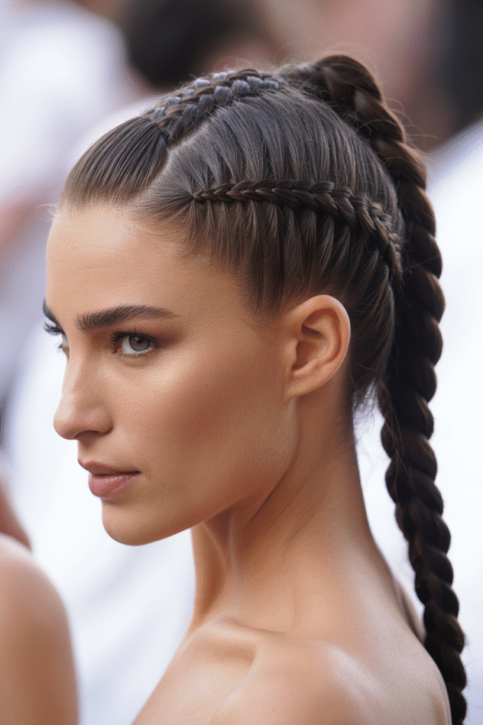 Channel your inner diva with a tight high ponytail braid. This look emphasizes your facial features and gives a sporty yet glamorous edge.