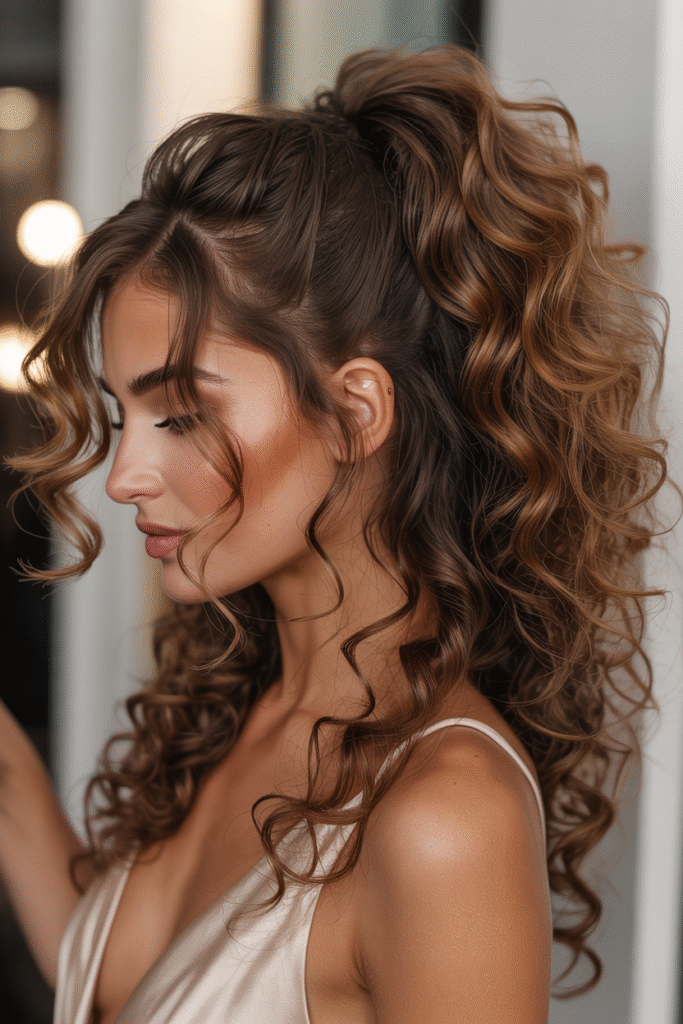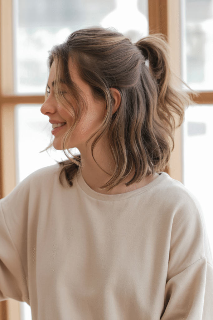 Perfect for casual days, the half-up ponytail gives your look a youthful charm. It’s ideal for medium to long hair and works great with waves or straight hair.