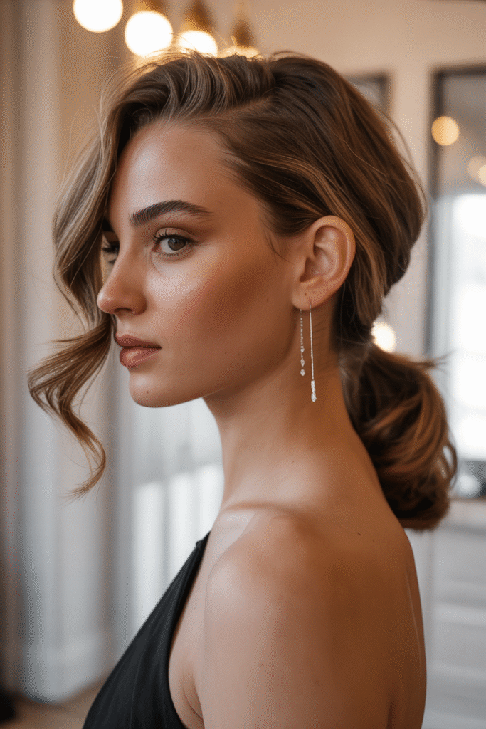 Add some asymmetry with a side ponytail. Whether sleek or tousled, it’s a great way to showcase earrings or highlight one side of your face.