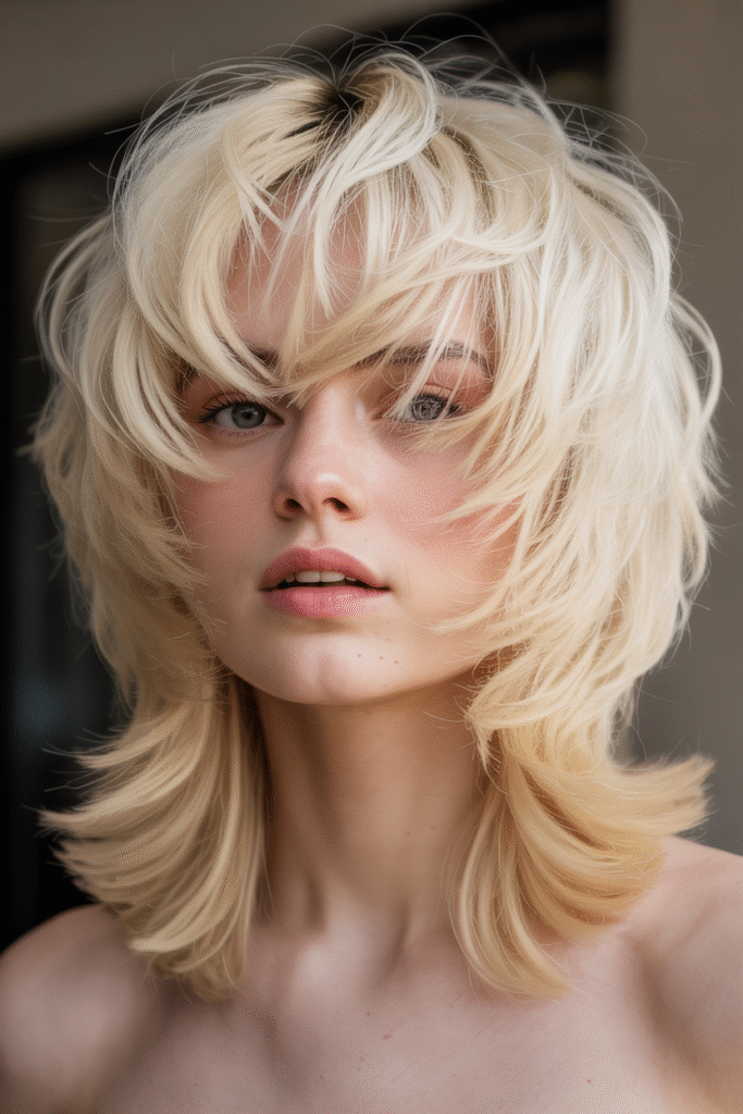 This voluminous fluffy wolf cut delivers a cloud-like texture that’s both airy and bold. The light fringes add softness to the look, making it a popular choice for fine-haired blondes in 2026.
